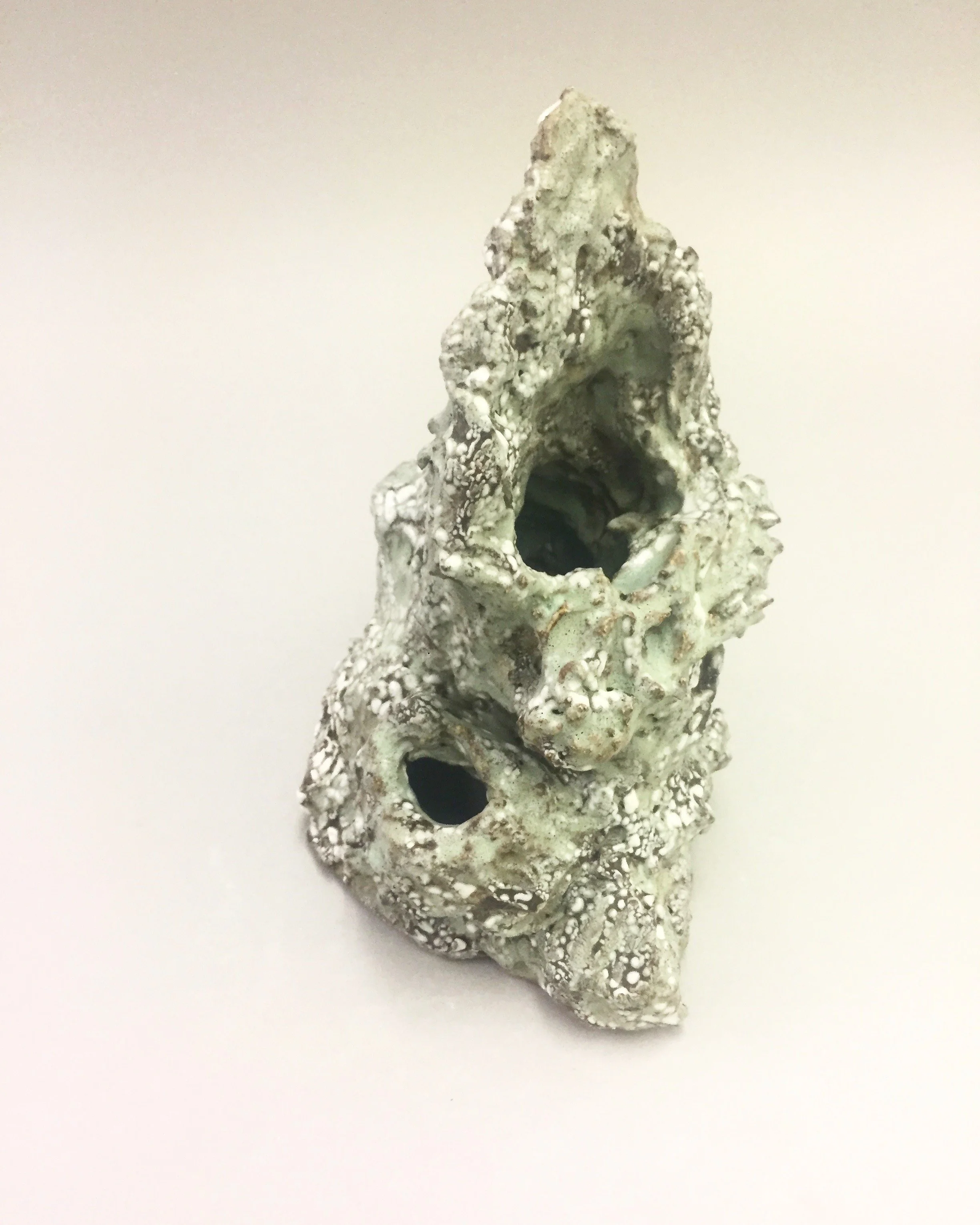 My work has always revolved on the fringe of the cycle of life and death. The continuous circle that connects humans, animals, and every other living thing. Living on the eastern shore all of my life, I began my artistic exploration by collection even before I knew that I was an artist. Bones, shells, rocks, dried seaweed, rusted objects piled up on dressers, in drawers, and naturally began to transform themselves into sculptures. Beginning purely as found object sculptures, the shapes and textures slowly evolved into other mediums, paintings, drawings, and arrangements leading into hand pinched ceramic sculptures.