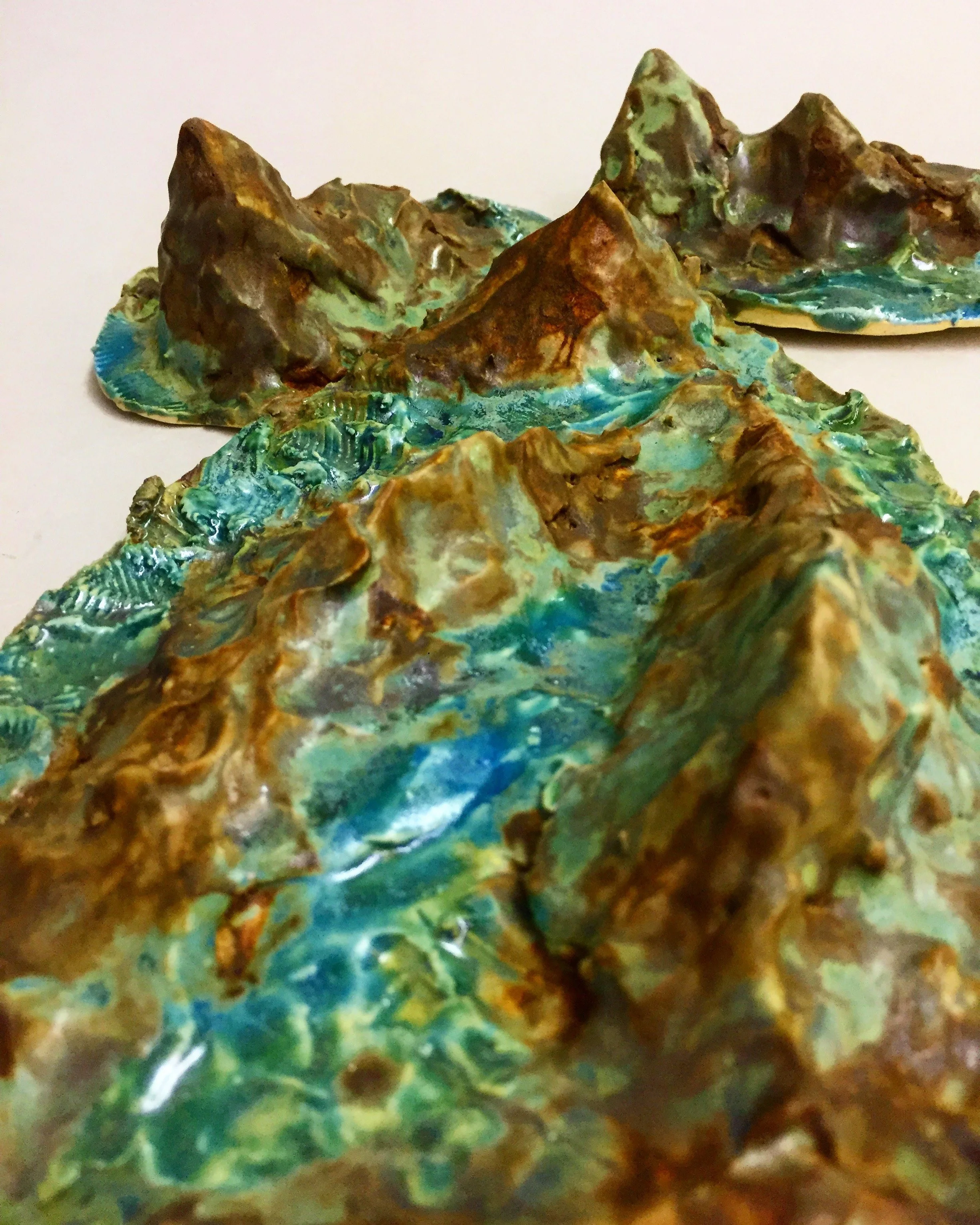 Valentines Day of 2017, my best friend lost his battle to depression and ended his life. Following his loss, I began recreating and reimagining the landscapes of his home in Stroudsburg, PA, the Pocono Mountains. This project originally started as a direct response to the grief of his passing, that eventually evolved to figurative desolate landscapes. Parallel to these ‘Grief Landscapes/ Landscapes Through His Eyes’ was the ceramic series, ‘Of the Sea Floor.’ This series focused on a way of handling clay that was as much about the hands making the mark as the form that it created. These two bodies of work became about the physical relationship and the emotional space in between the tops of the mountain peaks and the bottom of the sea floor.